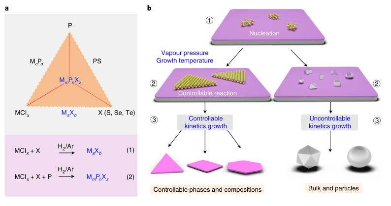 图1 可控合成具有不同相和组成的 MaXb和MmPnXz 的动力学生长模式