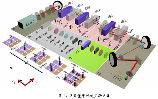 尽管拓扑保护束缚态的存在等一系列的拓扑现象首先在电子系统中被预言,越来越多的研究表明光学系统可以提供一个用于观察拓扑现象的平台。而基于光学系统所搭建的量子行走平台表明,量子行走可以作为一种有效的量子模拟工具被用来研究受时间驱动系统的拓扑相。然而,现有的一些实验研究仅局限于了一维量子行走。对于二维及更高维度的量子行走方案,由于缺乏对于量子行走中位置空间的有效操控,在量子行走系统中无法同时构造出表征有不同拓扑相的区域,因此对于存在于二维及更高维度的量子行走中的拓扑相关现象还没有被实验观测到。