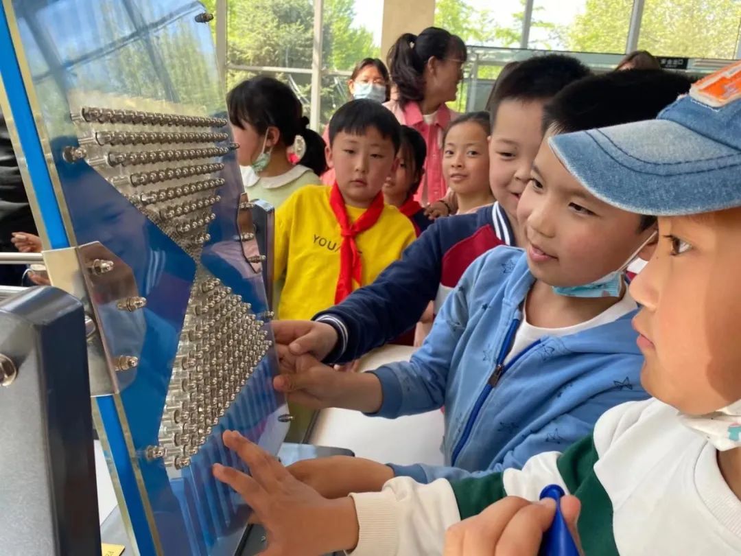 小朋友在物理学院科普活动中体验伽尔顿板实验和视觉魔球实验