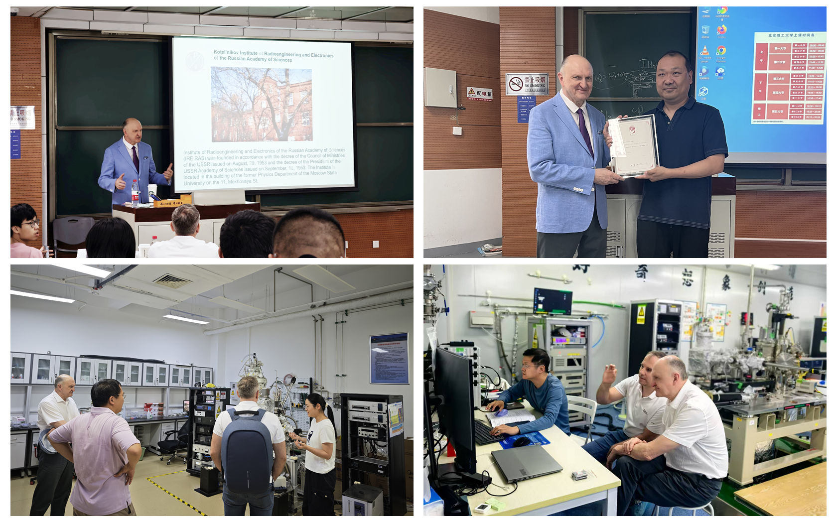 访问期间,尼基托夫与我校多个课题组就先进量子功能材料的设计、制备与调控等前沿方向进行了深入研讨;在物理学院作题 为《Antiferromagnetic Spintronics and Magnonics》的“百家大讲堂”学术报告,围绕反铁磁自旋电子学与磁振子研究领域的最新进展,与师生深入交流;访问了量子物理实验中心、低维量子结构与器件工信部重点实验室,并与科研人员进行交流。此外,在物理学院的积极协调下,代表团一行还访问了中国科学院物理研究所。