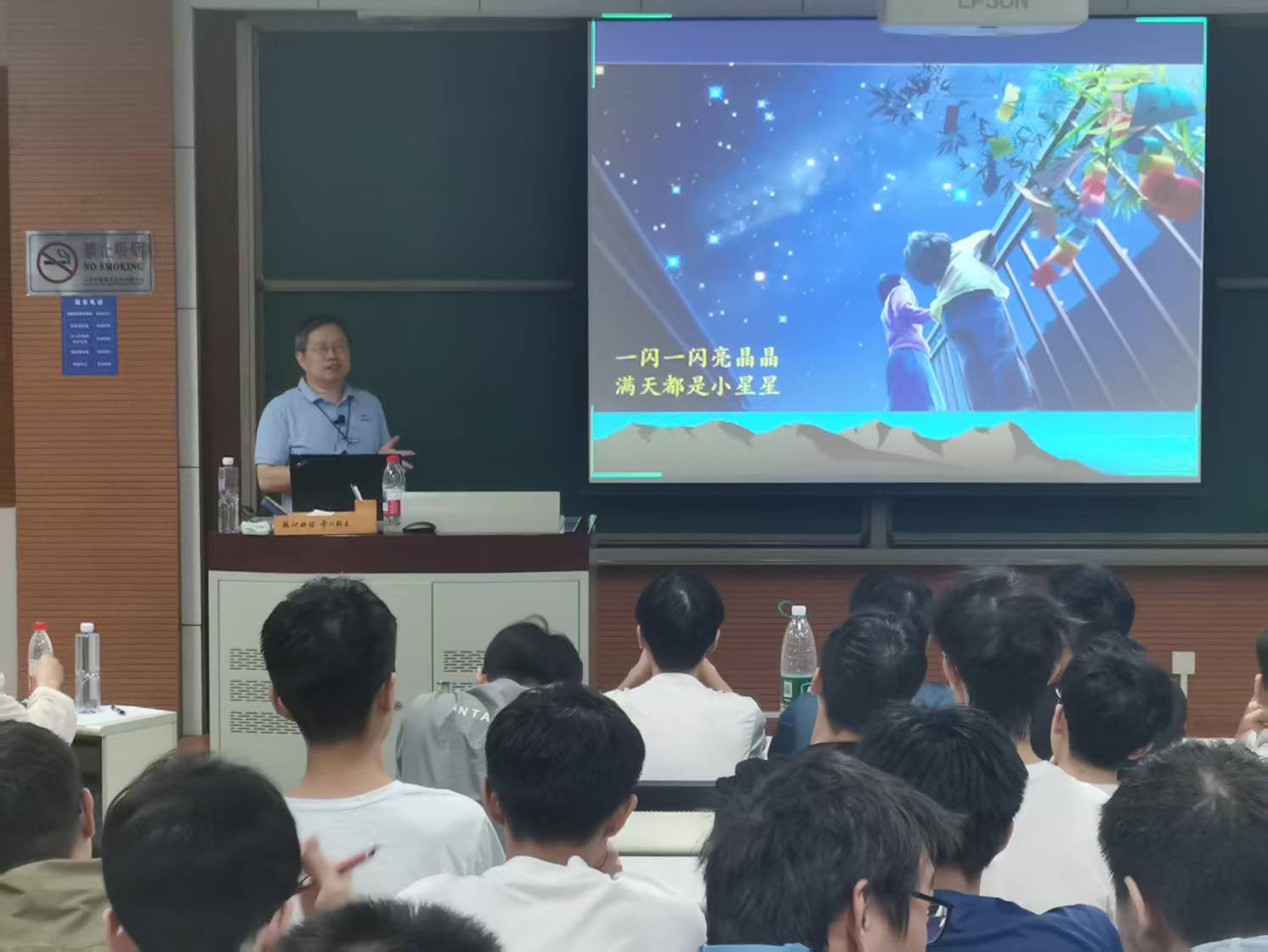 吴老师以"地球→太阳系→星系→宇宙"为逻辑链条,构建了一个层层递进的宇宙认知框架。在讲解过程中,他用通俗易懂的语言和清晰严密的逻辑,生动阐述了宇宙加速膨胀、黑洞、引力波等重要天文现象的发现历程和物理本质。同时,讲座中还融入了多普勒效应、红移、干涉等基础物理概念的讲解,有效激发了学生的好奇心和求知欲。吴老师特别强调最新科学技术在探索宇宙中的关键作用,并介绍了天文探测技术衍生出的多种应用——如日常生活中的实用设备、医学成像和军事技术等,以此激励学生扎实掌握基础知识,未来投身于探索宇宙奥秘的伟大事业中。