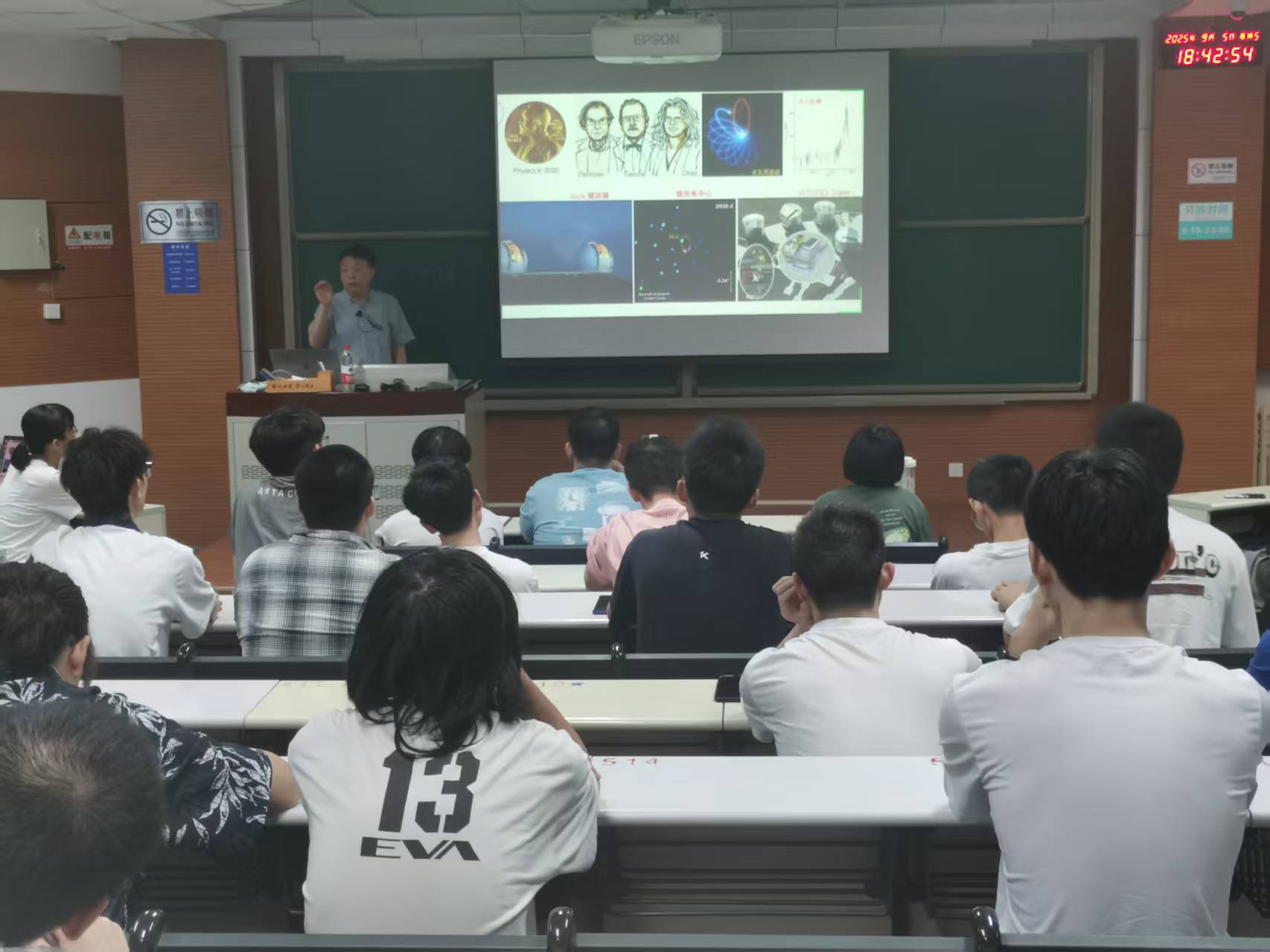 来源: 作者: 发布时间:2025-09-062025年9月5日,应张晋教授邀请,中国科学院高能物理研究所著名天体物理学家王建民研究员莅临我校,在理学楼C1-207报告厅为物理与天文学院师生带来了一场题为“从星系到核心的超大质量黑洞”的精彩学术报告。本次讲座吸引了包括二年级本科生、青年教师及博士研究生在内的近百名师生参与。